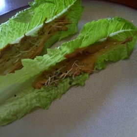 For a quick snack spread raw almond butter over romaine hearts, top with sprouts and enjoy!