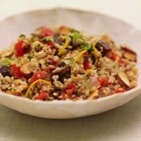Sofrito, an aromatic mixture of sautéed bell pepper, tomatoes, garlic and onion, provides a flavorful base for many Latin dishes. Distinctly Middle Eastern flavors like orange, dates, cumin and almonds give this bulgur wheat salad a truly global twist.