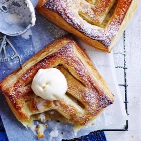 Dust with icing sugar. Serve pies warm with ice-cream.