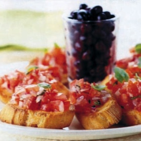 Topping: Combine ingredients in small bowl; spoon tomato mixture onto toasts. Top with small fresh basil leaves, if desired.