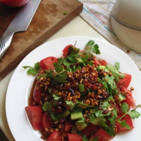 Mix together peanut oil, sambal olek, lime juice, and fish sauce.