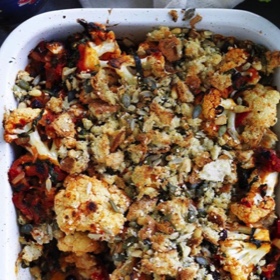 Spoon cauliflower mixture into a 3-litre (12-cup) ovenproof dish, cover evenly with topping mixture.