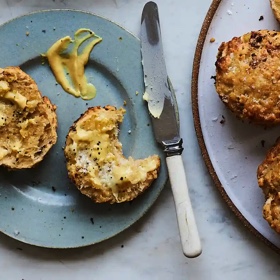 These are best eaten just warm from the oven, spread with salted butter and a good blob of dijon mustard.