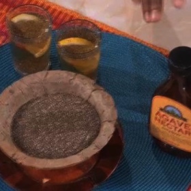 Add chia seeds, a slice of lemon and a dash of agave to distilled water.