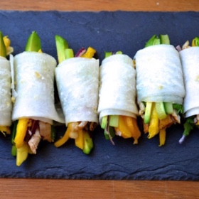 Top with coriander and then roll ensuring you press down and keep the rolls tight.