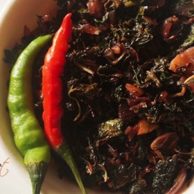 At this stage add the chopped cholai leaves and toss them with the onions.