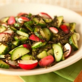 Noodle-like black seaweed strands make this strikingly colorful salad a healthful side dish for pairing with fish, grilled meals or Asian noodle dishes. The salad benefits from at least 30 minutes in the refrigerator to marinate in the vinaigrette.