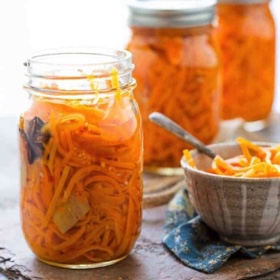 Sterilize your jars before canning—sterilizing your canning equipment before making these ginger pickled carrots is crucial. Again, you don’t want any bacteria making its way into your canned goods. Use stainless-steel appliance if possible, and thoroughly clean the glass jars before starting the canning process.