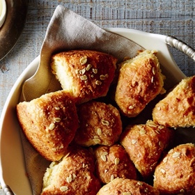 Monkeymom's supple, rich rolls have just a hint of sweetness to them -- they're chewy and tender and full of deep flavor from the molasses, but versatile enough to complement (rather than overwhelm) a variety of main dishes. We love the ease of the first refrigerator rise, and these are virtually guaranteed to come out looking beautiful, with their butter-slicked and oat-flecked tops. - A&M —The Editors