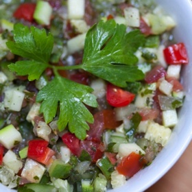 It is a great way to get in not only tomato, with all its lycopene and other beneficial vitamins and minerals, but also high silicon-containing cucumber, which is great for building healthy skin, hair and nails from the inside out.