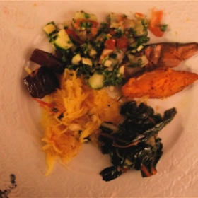 This is great for bringing to spring and summer parties. It adds a raw salad to a dinner party meal, WHILE looking elegant and brightly colored. Sometimes you want a little change from big floppy green leaves all over the plate. Don’t get me wrong, big floppy green leaves as a green salad is one of the staples of my diet, but sometimes you want to try something that looks visibly different.