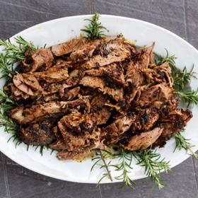 Remove the aluminum foil, and place the lamb in the oven. Roast for approximately 4 1/2 hours, or until the meat is completely tender.