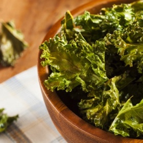 Bake the kale for 10 minutes, flip it, then bake it for 10 more, until it’s crispy (but still green!).
