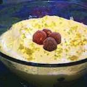Whip the cream (it should not be too firm). Stir the orange zest into the cream and cover the custard with big spoonfuls of cream. Chill for a couple of hours before serving. The trifle is best if made a day before.