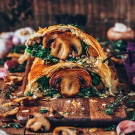 It’s a versatile recipe, so you can add additional ingredients to your wish. But please make sure that the filling is dry enough and completely cold before wrapping it in the vegan puff pastry. Otherwise, the pastry is going to get soggy and will tear when you want to wrap up your wellington. To be sure the filling won't be too moist, simply add 2-3 tablespoons of oats or ground flaxseeds that will bind the excess moisture.
