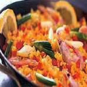 Add the rice and saffron and sauté for 3-4 minutes. Add the vegetable or chicken stock and cook for 15 minutes or until the rice is cooked. Add the capsicum and spring onions, chicken breast and bacon, the thawed peas, oyster sauce, soy sauce, fish sauce, and prawns. Season with salt and pepper, add the fresh oregano and parsley, stir through and serve very hot.* Arborio rice or risotto rice are used in Italian dishes. It is not as dry or grainy as normal or parboiled rice.