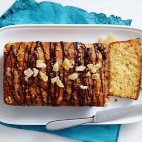 Our delicious loaf is a tasty twist on the popular pineapple and ginger upside-down cake. Drizzled with dark chocolate and topped with glace ginger, it's the perfect addition to your afternoon tea.