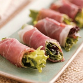 Squeeze the greens together and roll the prosciutto into a tight log.