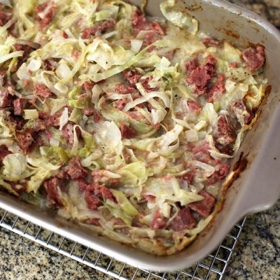 If you'd like to cut down on baking time, steam the cabbage for about 10 minutes before combining it with the corned beef.