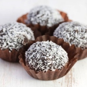 Dip each ball in a separate smaller bowl containing the coconut flakes.