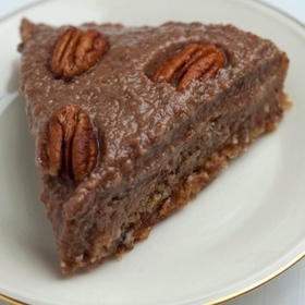 Blend all ingredients together in the blender until smooth. Pour onto the crust of the tray, and garnish with fresh, raw pecans.