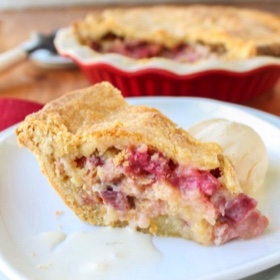 Pour into the prepared pie crust. Mound the rhubarb slightly in the middle.