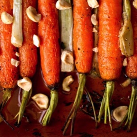When the carrots and onions are tender and browned in places, remove from the oven.