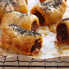Spoon or pipe lamb mixture lengthways along each pastry strip.