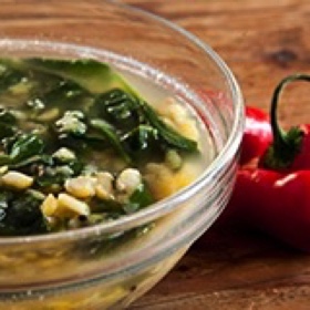 Once the desired consistency has been reached, add the spinach and season the peas with salt to taste. Cover and reduce heat to low.