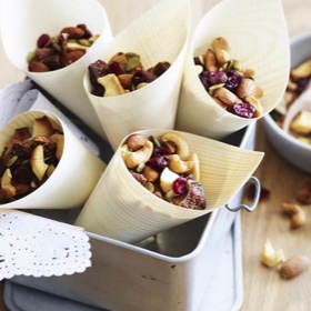 This combination of roasted nuts and cranberries makes a delicious, healthy and filling snack for kids on the go.