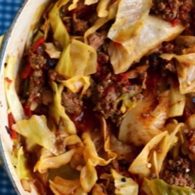 Move mixture to baking dish, cover & cook in oven for 30 minutes at 375F (or until cabbage is tender.