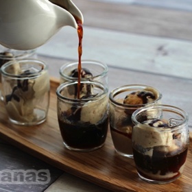 Float a cool scoop of yonanas with a hint of cinnamon into a cup of hot espresso. Make it extra special and add a drizzle of chocolate syrup & enjoy this fun twist on a classic Italian dessert.