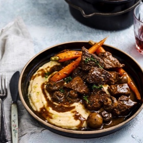 We used a 25cm x 33cm oval cast iron casserole dish. Serve with lemon thyme soft polenta or, if you prefer mash side dishes, and chilli-garlic broccolini. Refrigerate beef stew in an airtight container for up to 3 days.