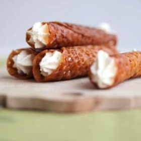 Once baked, you need to work fast to shape the brandy snaps, so its easier if you bake one tray at a time. Remove each tray from the oven and leave for a minute or so to firm up slightly, then lift from the baking parchment using a fish slice. The mixture needs to be just firm enough to remove, but pliable enough to shape. Check by releasing around and under the edges with a small palette knife.