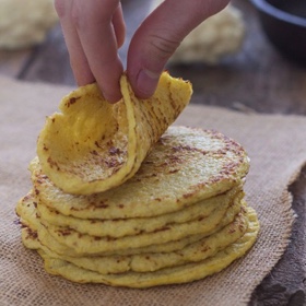 Heat a medium sized pan over medium heat and place the tortillas into the pan pressing down slightly and brown them to your liking. (Don't skip this step because it gives them slightly crispy on the edges and gives them a wonderfully nutty taste)