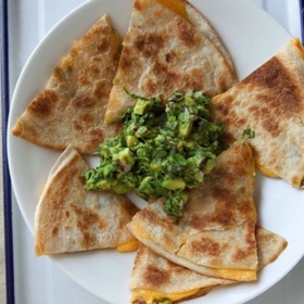 Top it with the second tortilla and cook over moderately high heat until crisp on the bottom, about 3 minutes.