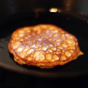 As soon as bubbles formed on the surface (about 1½ minutes) flip the flapjack over and let it cook for another 30 seconds or so on the other side.
