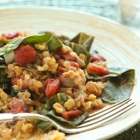 Garam masala (a blend of Indian spices) enriches these greens with a warm flavor that pairs well with tomatoes and lentils.