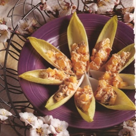 Endive Cups Filled with Cheese, Mango, and Toasted Pecans