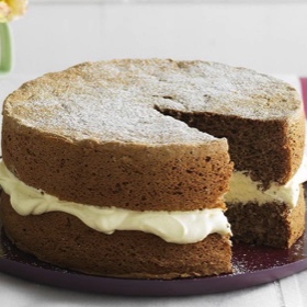 Divide mixture between pans and bake about 18 minutes. Immediately turn sponges, top-side up, onto baking-paper-covered wire rack to cool.