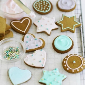 Decorate biscuits by spreading or piping with royal icing, decorate with cachous.