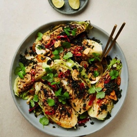 This sweet cabbage is deliciously complemented by the hot and fragrant chilli and lime oil: make sure you serve it with plenty of crusty bread to mop everything up with. Serve as a vegetarian main course or as a side to grilled fish or tofu.