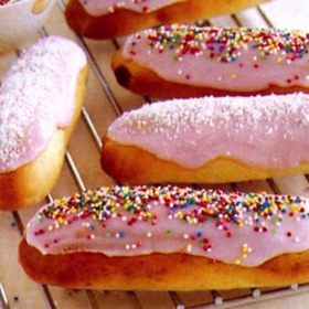 Preheat oven 190°C. Line 2 baking trays with non-stick baking paper. Punch down the dough with your fist. Turn onto a lightly floured surface and knead for 1-2 minutes or until smooth and elastic. Divide the dough into 12 equal portions and shape each into 14cm lengths. Place on prepared trays, leaving 5cm between each for spreading. Cover with a damp tea towel and place in a warm, draughtfree place for 20-25 minutes to prove.