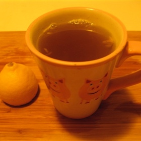 Cut a lemon in half. When the mug has cooled to a point you can sip the tea, squeeze ½ lemon into the mug.