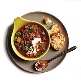 Ladle about 1 cup lentil mixture into each of 4 bowls; top each serving with 1 tablespoon yogurt and 1 tablespoon cilantro.
