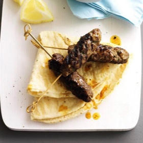 Using hands, form lamb mixture into 16 sausage shapes, thread onto skewers; flatten slightly.