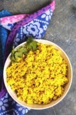 Lightly seasoned with garlic, cumin, and cilantro, vibrant turmeric yellow Mediterranean rice is an easy 30 minute vegan side dish.