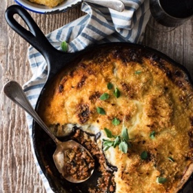Place half the eggplant in the bottom of a baking dish (I used my 26cm/9" Lodge skillet), then top with all the Filling.