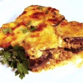 Moussaka can be any dish of layered vegetables and ground meat, and dishes with the same or similar names are prepared in several areas of the world. Other Greek versions call for artichokes, potatoes, and zucchini, or a combination, but this is the classic known worldwide. Moussaka is generally served in large portions.