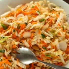 The sweet and tangy dressing for this coleslaw also makes a wonderful all-purpose dressing for any salad. Turn this dish into a vegetarian main course by tossing in some cubed baked tofu.